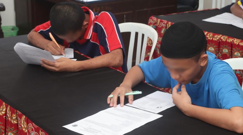 Empat ABH yang berada dalam pengawasan kejaksaan mengikuti Ujian Tengah Semester (UTS) di Ruang Perpustakaan Lapas Kelas IIA Kediri, Selasa (30/9/2025).