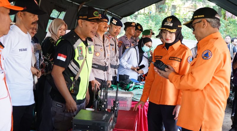 Usai memimpin apel, Mbak Wali beserta jajaran meninjau satu persatu peralatan dalam menghadapi bencana. Selanjutnya menyaksikan simulasi penanganan banjir sebagai bentuk kesiapsiagaan menghadapi potensi bencana di musim hujan.