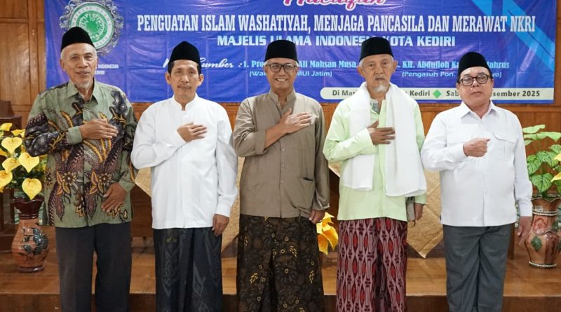 Wakil Wali Kota Kediri Qowimuddin mengikuti kegiatan Halaqah Penguatan Islam Wasathiyah dalam Menjaga Pancasila dan Merawat NKRI yang diselenggarakan oleh Majelis Ulama Indonesia (MUI) Kota Kediri di Aula Masjid Agung Kota Kediri, Sabtu (27/12/2025).
