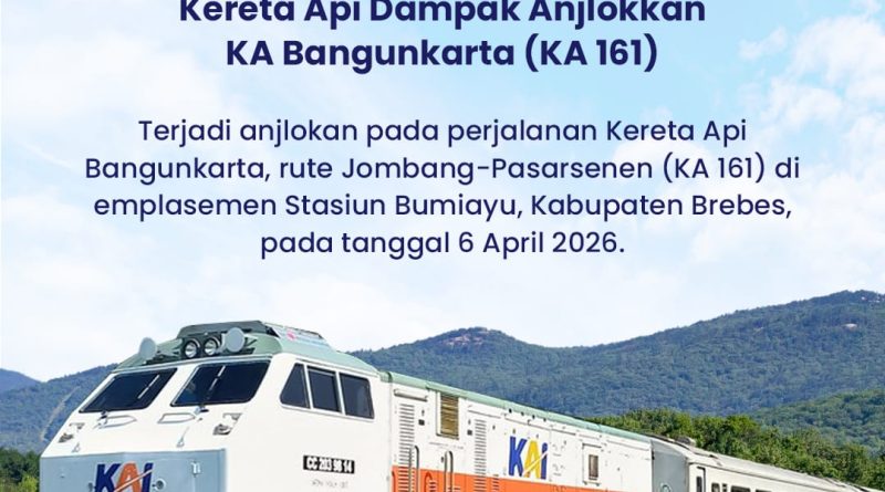 PT Kereta Api Indonesia (Persero) Daerah Operasi 7 Madiun menyampaikan permohonan maaf kepada seluruh pelanggan, khususnya yang perjalanannya terganggu akibat anjlokan 3 kereta di Emplasemen Bumiayu (km 312+1, wesel 21A dan 21B) Daop 5 Purwokerto, pada Senin, 6 April 2026 sekitar pukul 14.15 WIB.