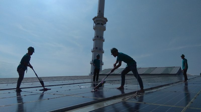 Namun pekerja terampil itu cukup cekatan membersihkan panel solarsel dari kotoran dan debu yang melekat. Sehingga luasan panel solarsel yang berukuran 41 x 40 meter pembersihan dilakukan kurang dari satu jam.
