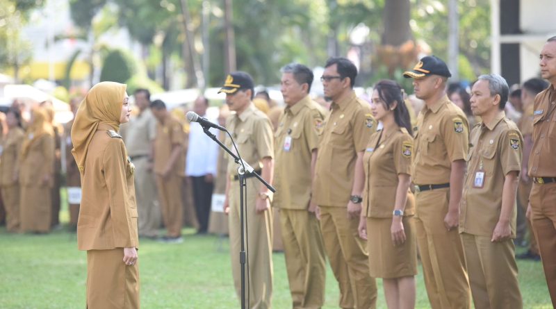 Wali Kota Kediri Vinanda Prameswati memimpin apel pagi di Halaman Balai Kota Kediri. Pada apel kali ini Mbak Wali menekankan pentingnya kolaborasi berbagai pihak dalam meningkatkan kualitas pendidikan dan memperkuat karakter kebangsaan generasi muda di Kota Kediri, Senin (06/10/2025).
