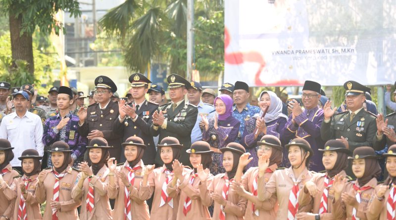 Wali Kota Kediri Vinanda Prameswati memimpin Upacara Peringatan Hari Jadi ke-80 Provinsi Jawa Timur yang berlangsung di Halaman Balai Kota Kediri, Senin (13/10/2025).