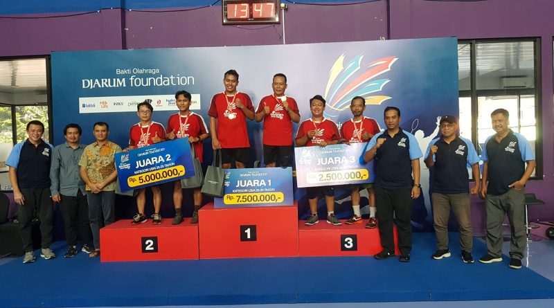 Sedangkan di kategori 46 tahun ke atas, pasangan Burhan/Indra dari TVRI Surabaya keluar sebagai juara setelah menundukkan rekan satu timnya, Joko/Yusron, dengan skor telak 21–9, 21–5.