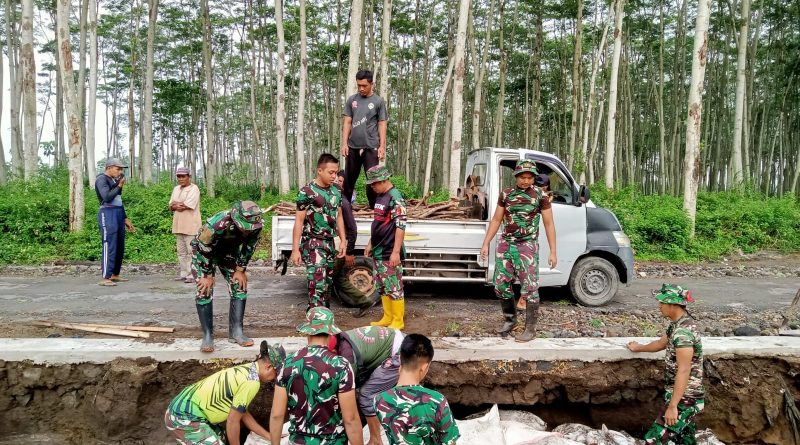 Sementara Kepala Desa Gadungan, Dari Purwanto, menyampaikan apresiasi kepada Satgas TMMD yang turut membantu warga menangani dampak hujan lebat di wilayahnya.